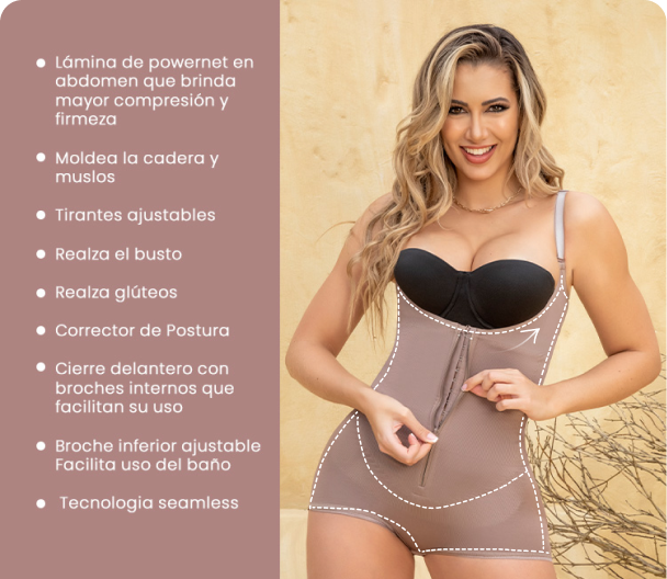 - Lámina de powernet en abdomen que brinda mayor compresión y firmeza